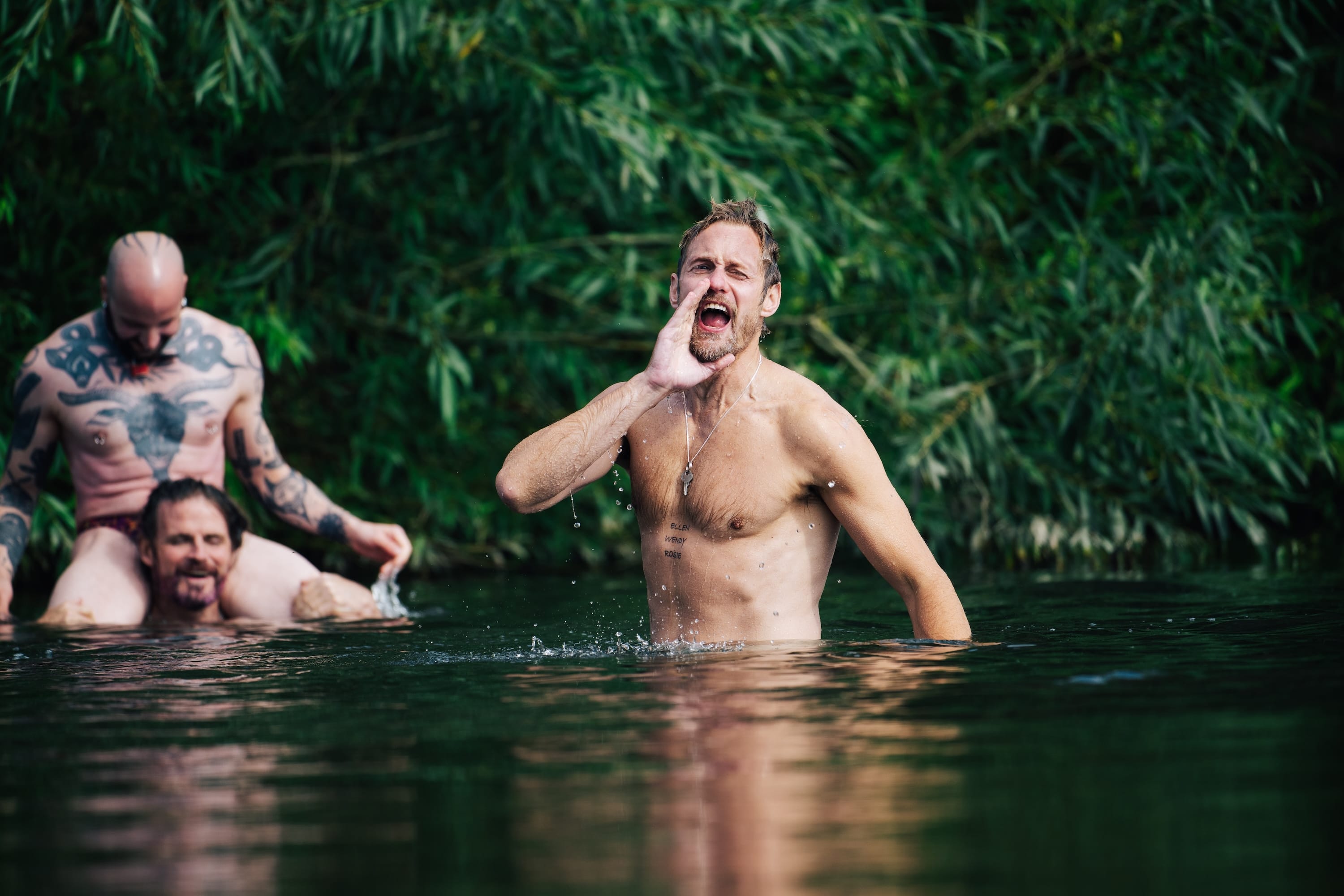 For those scenes, from wrestling in the living room to an orgy in the woods, Alexander divulged at the BFI London Film Festival that there wasn’t really much rehearsing involved between you two, especially for the wrestling scene. Was there an intimacy coordinator present on the set?