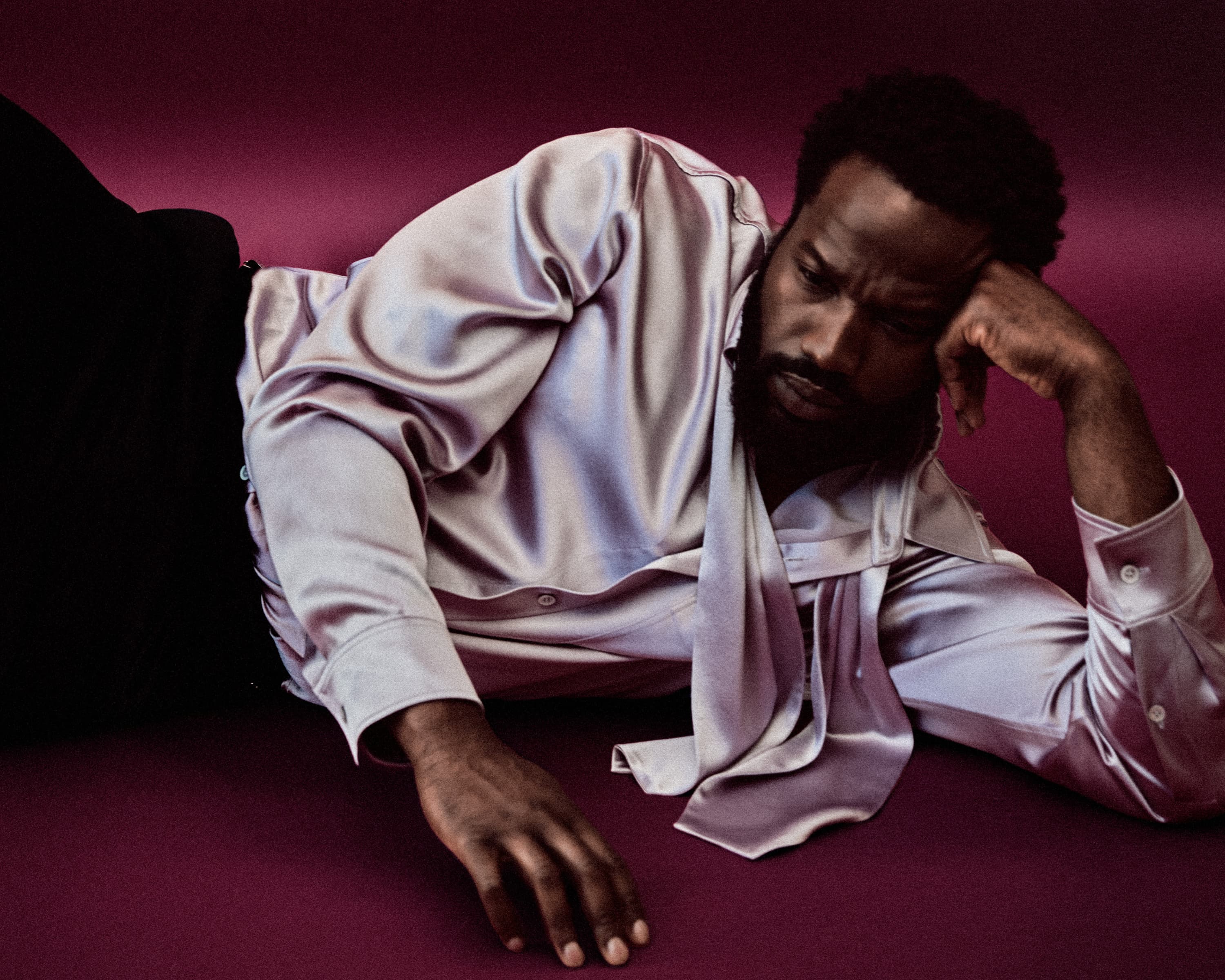 Dìrísù rose to the challenge, however. His turn as Wes, a musician and entrepreneur, is eccentric and charismatic, a comedic spark in the dark, oft-violent setting he finds himself in. He is a character sculpted collaboratively, unlike anyone the actor has stepped into before. “He’s definitely more flamboyant, a bit more luxurious, looser,” Dìrísù mediates. “And it was a lot of fun playing him. Working with Amy [Westcott], the costume designer, really empowered me to create his aesthetic. It’s not that I wasn’t afforded the opportunity to do so before, but I had never allowed myself to take up that space in terms of really designing my character. I was grateful to be able to really collaborate with her.”